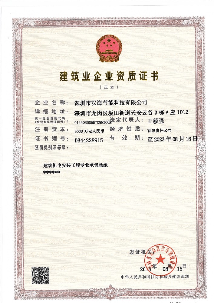“建筑機電安裝工程專業承包叁級”資質